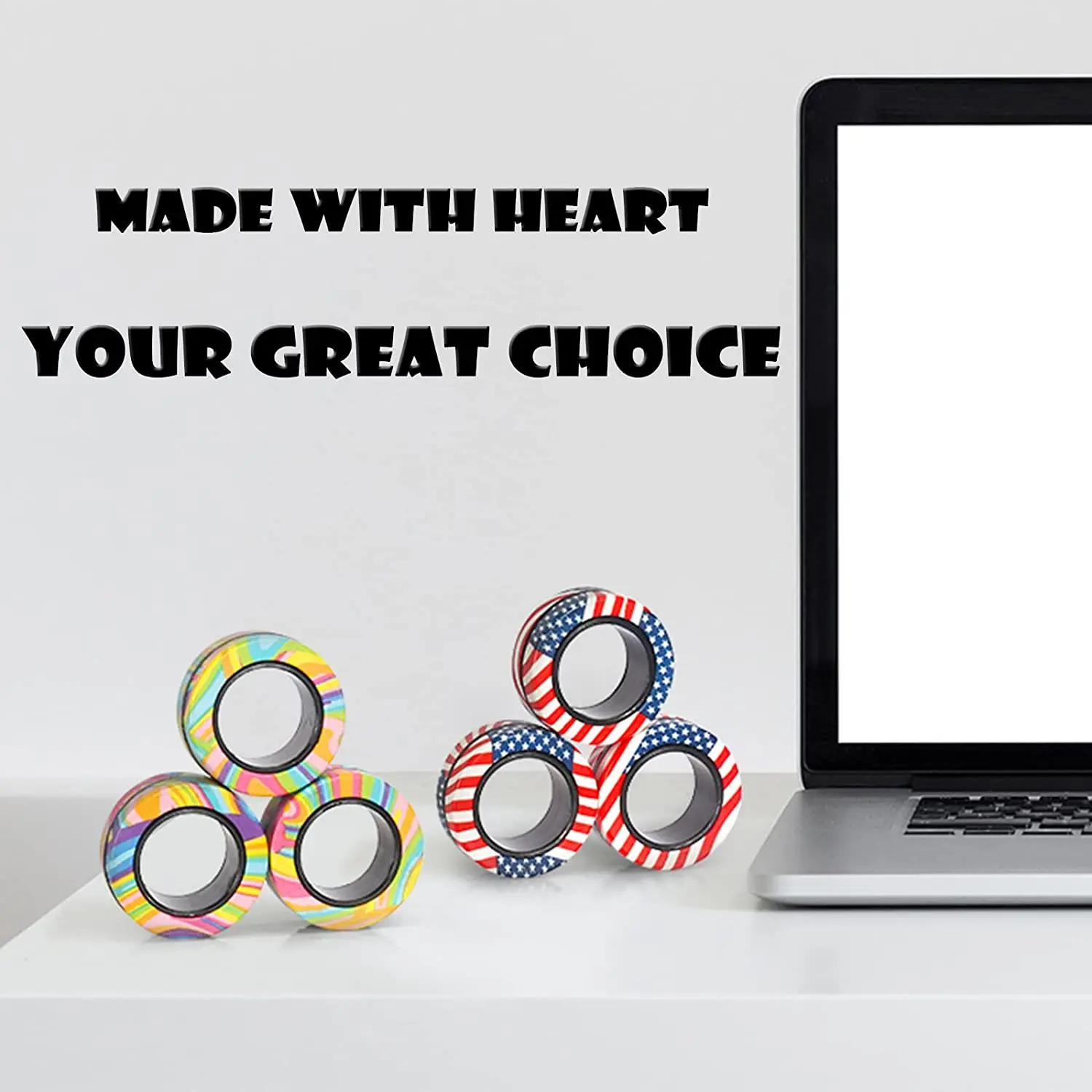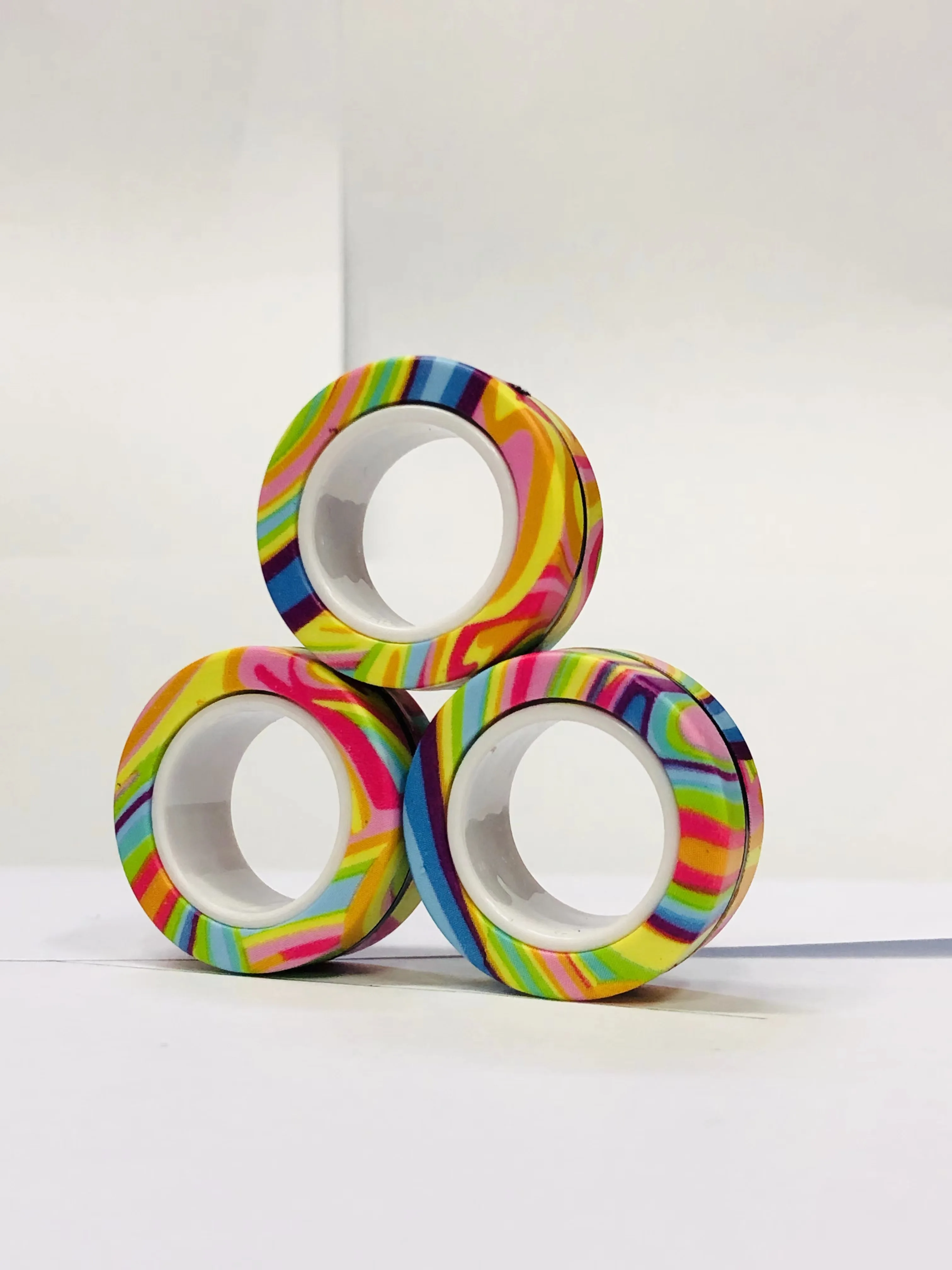 • 3pcs Finger Magnetic Rings Colorful Fidget Toy Set Adult Magnets Spinner Rings for Relieve Stress Anxiety Relief Therapy
