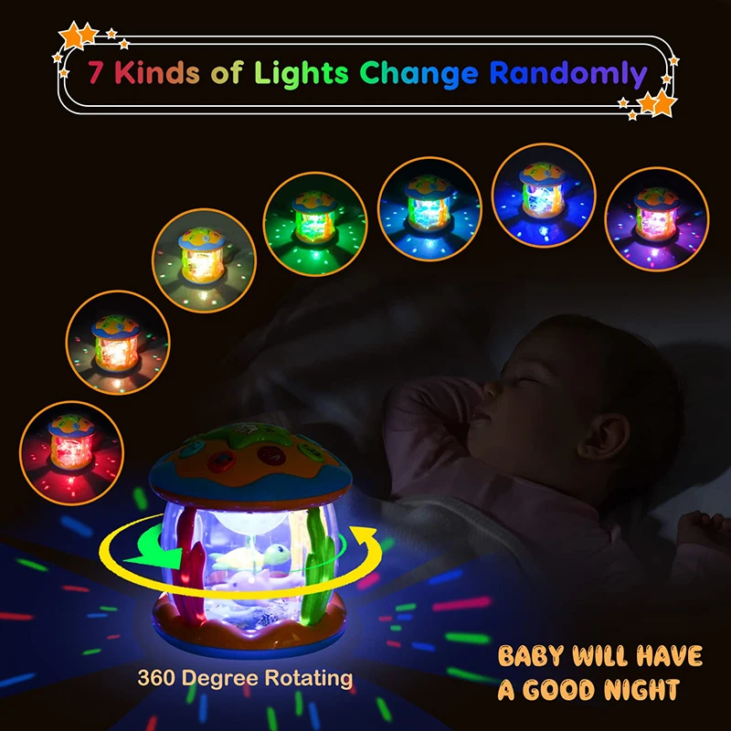 • Baby 4 in 1 Tummy Time Crawling Toy Early Learning Sea Animals Sensory Toy Light Up Musical Projector for Infant Toddler Gifts