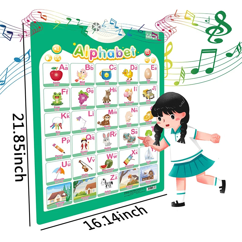 • 9PCS/Set English Talking Poster Alphabet Numbers Fruits Animals Electronic Interactive Wall Chart for Kids Early Educational Toy