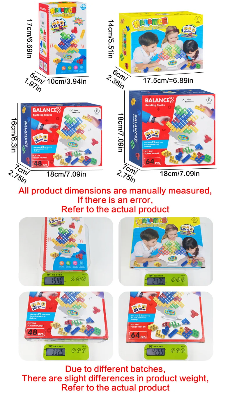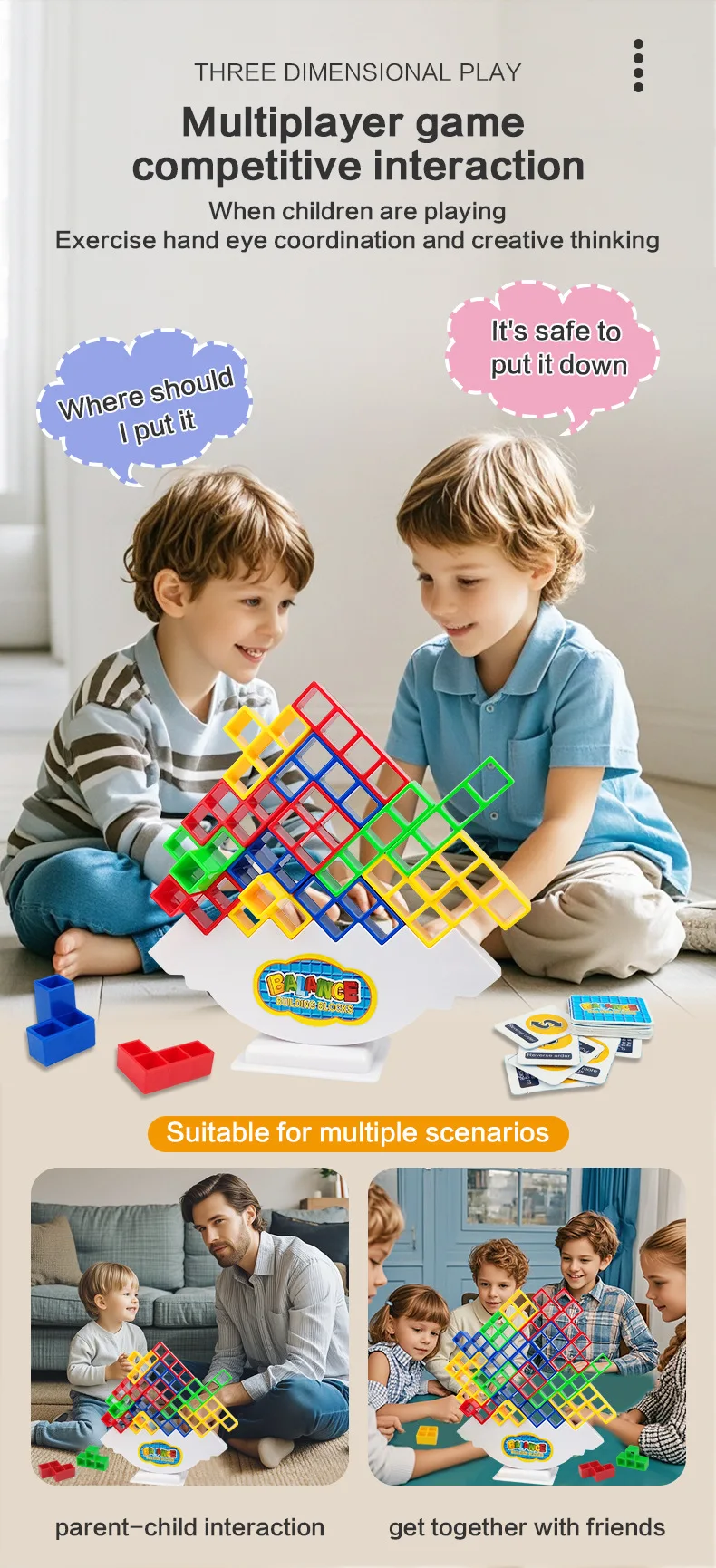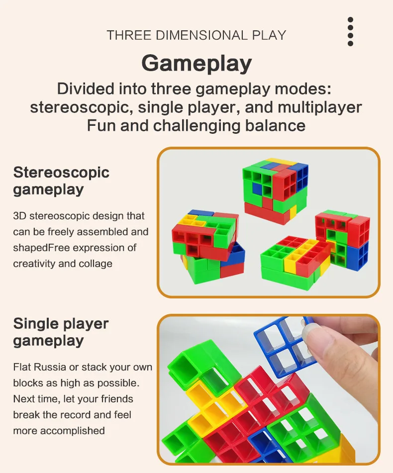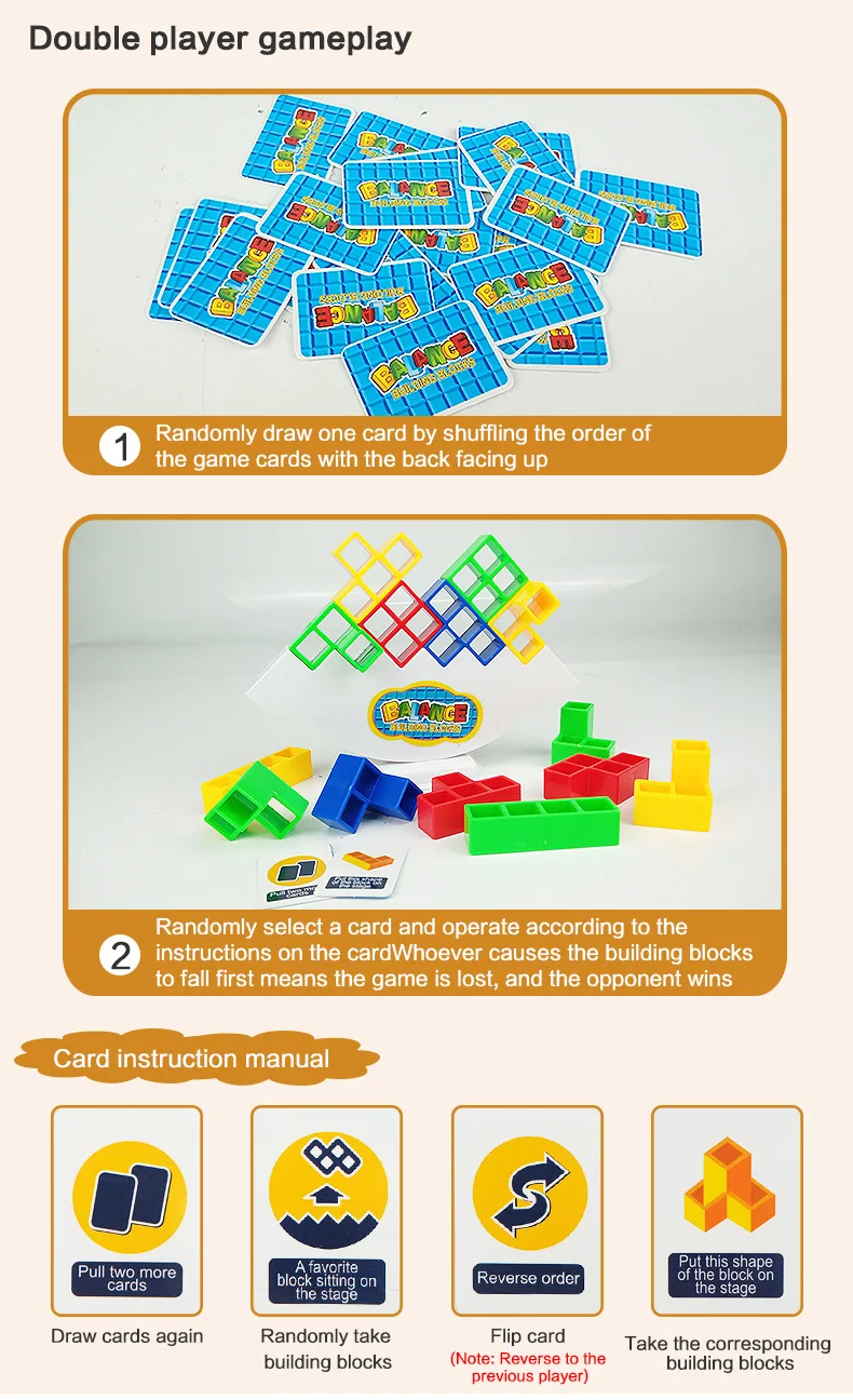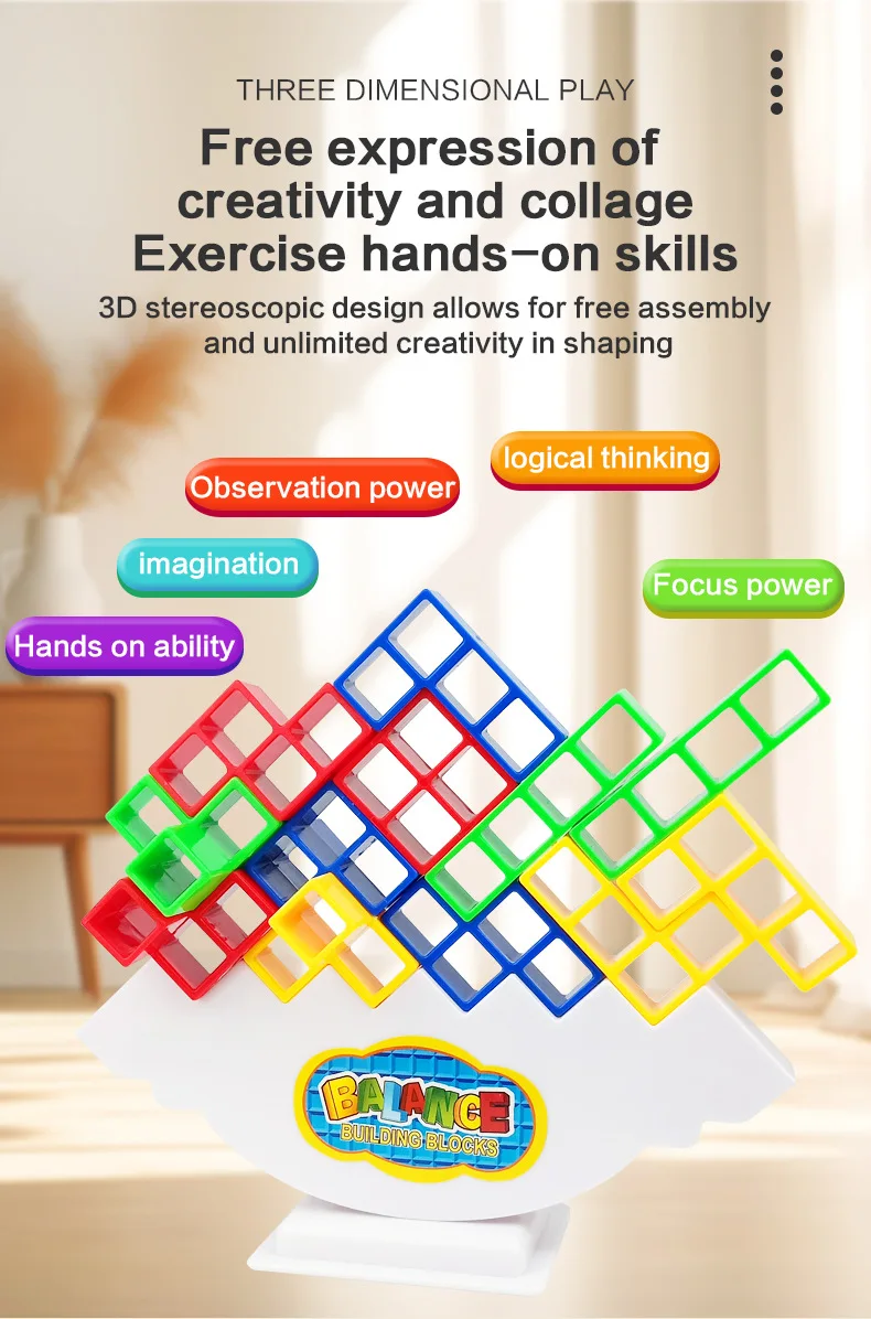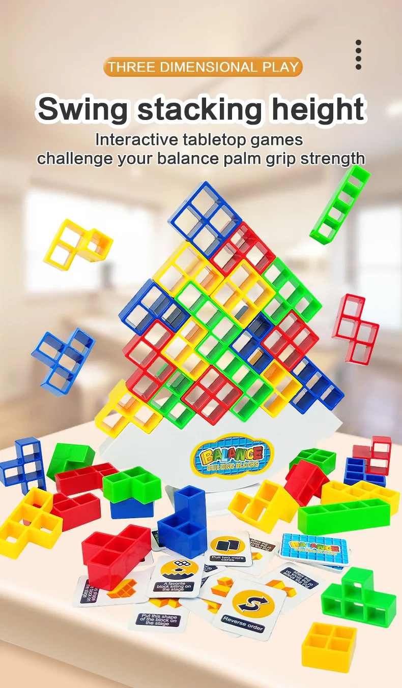 • 48PCS Tetra Tower Building Blocks Balance Stacking Games Toys for Kids Adults Friends Classroom Family Board Game and Fun Party